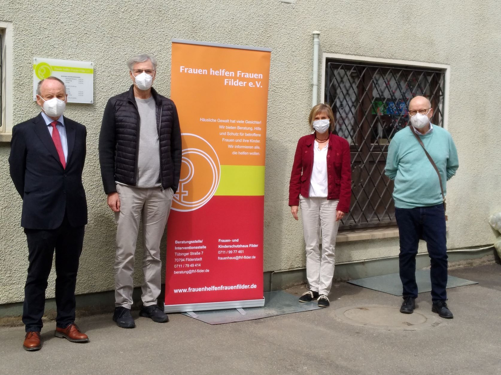 v.l.n.r.: Edelbert Vees (Vorsitzender Bürgerstiftung Leinfelden-Echterdingen), Wolfgang Herb (Vorsitzender Bürgerstiftung Filderstadt), Tanja Schneider (Frauen helfen Frauen Filder e.V.), Peter Stapelberg (Vorsitzender Bürgerstiftung Ostfildern)