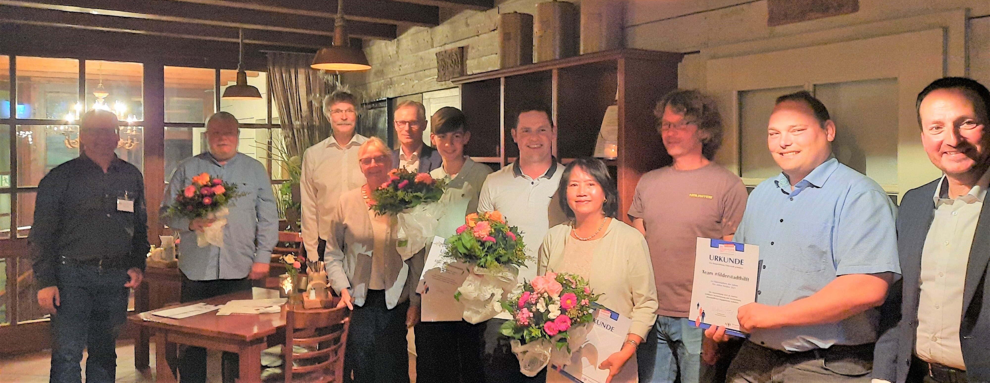 Jetzt konnte die Bürgerstiftung persönlich, in Anwesenheit von OB Christoph Traub und weiteren Unterstützern, den von einer Jury ausgewählten Engagierten (Bich Nguyen, Harald Weinmann, Elias Zimmermann und dem Team #filderstadthilft) Wertschätzung und Respekt sowie den Dank der Stiftung aussprechen. Zusammen mit Angehörigen der Preisträger, den Paten und Unterstützern der Aktion wurde die Abendveranstaltung genutzt, um sich neben vielen anderen Themen auch über die schwierigen Zeiten der Corona-Pandemie auszutauschen, ohne aber den geselligen Teil des Abends zu vernachlässigen. Fazit des Abends: Ohne die Tatkraft von engagierten Bürgerinnen und Bürgern mit ihrem stillen Einstehen für Andere wäre vieles in Filderstadt nicht zu bewältigen gewesen.