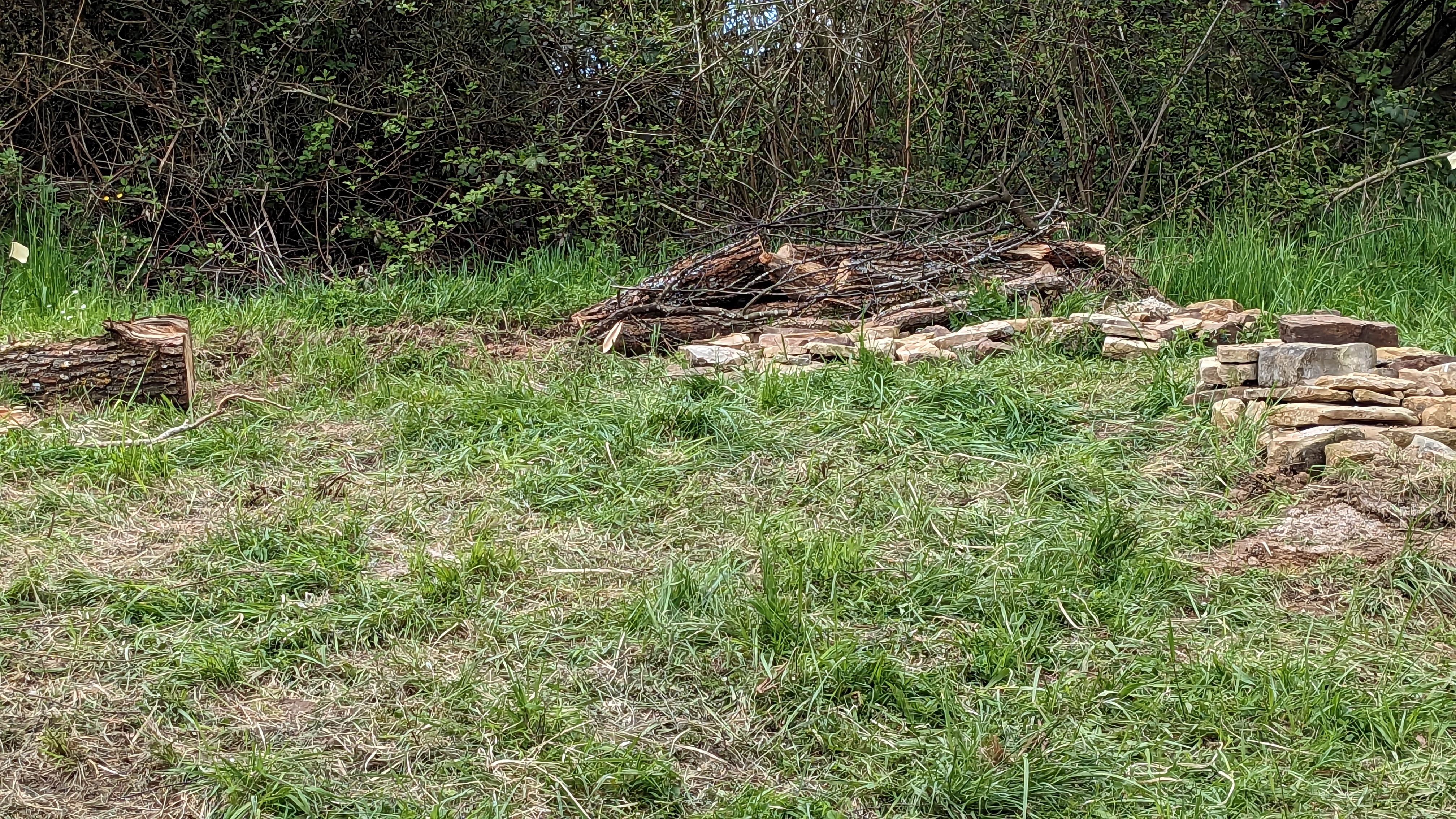 An mehreren Stellen des Gebiets bilden nun größere Steine und Wurzelstöcke die Basis des Habitats. Darüber kamen Grobschotter und unterschiedliche Felder aus Sand, Kies und Häckselmaterial. Abgedeckt wurde das Habitat schließlich mit Totholz und Astmaterial.