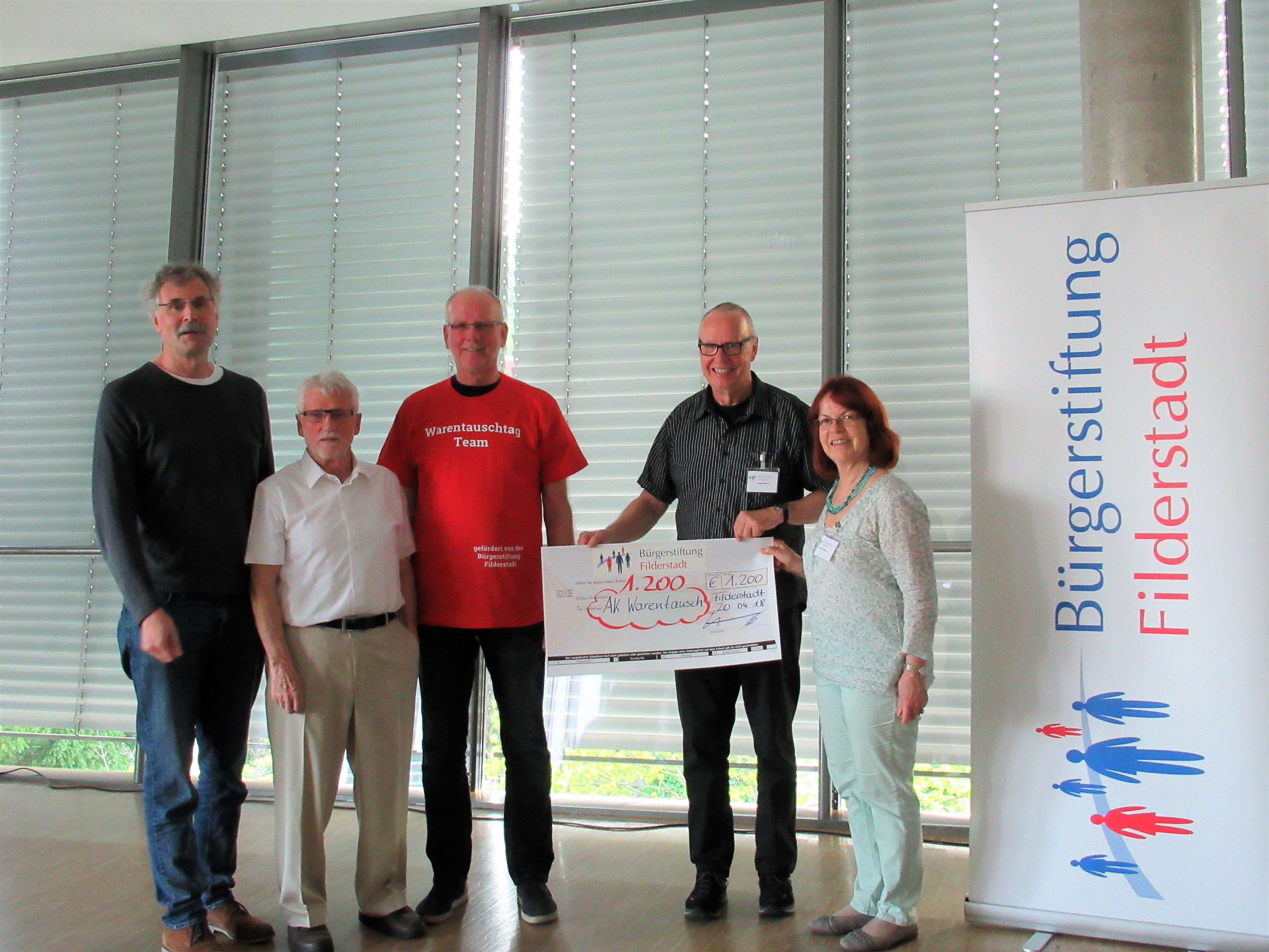 Die Bürgerstiftung Filderstadt hat einen der Förderpreise 2018 an den AK Warentauschtag vergeben. Das Projekt "Warentauschtag Filderstadt" wird organisiert von einem Arbeitskreis, der sich aus den Mitgliedern der Parteien, des BUND, Privatpersonen und dem Umweltschutzreferat der Stadtverwaltung zusammensetzt. Der erste Warentauschtag fand am 24. Oktober 1992 statt und wird seitdem zweimal jährlich durchgeführt.