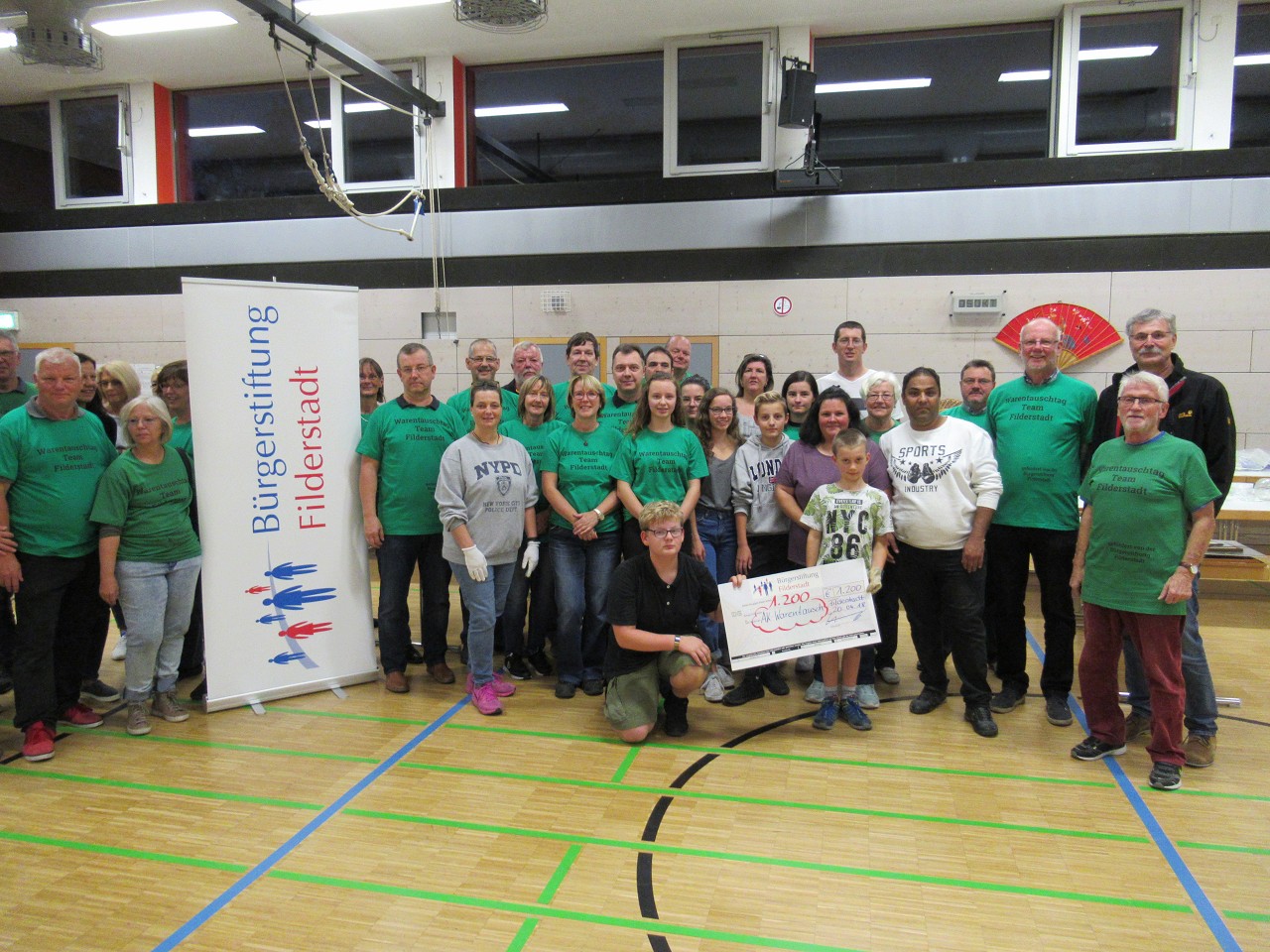 Bei Gelegenheit eines Helferfestes des AK Warentausch am 20. April 2018 konnten Rosemarie Gädeke, Jürgen Brune und Wolfgang Herb (alle Bürgerstiftung) Raimund Gunkel und Johannes Jauch (beide AK Warentausch) die freudige Nachricht und einen Scheck in Höhe von 1.200 € übergeben.